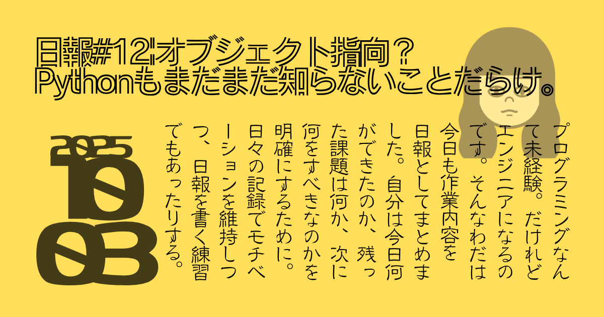 日報#12|オブジェクト指向?Pythonもまだまだ知らないことだらけ。