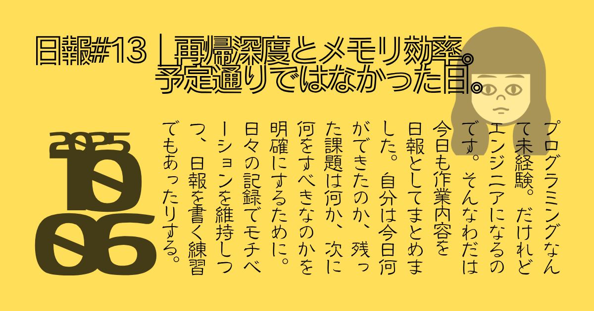 日報#13|再帰深度とメモリ効率。予定通りではなかった日。